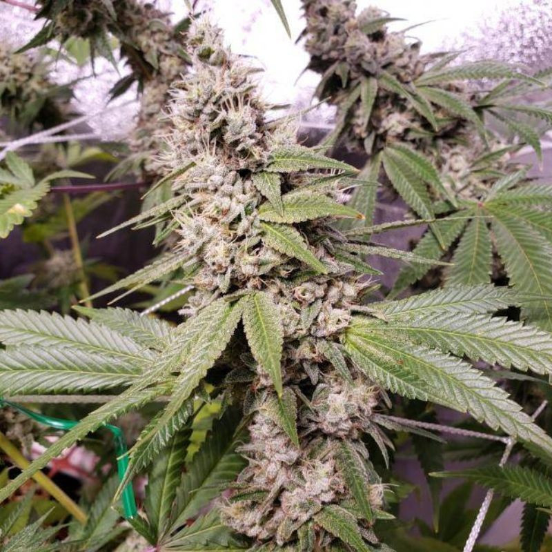 Die Pflanzen erreichen eine mittlere Höhe, meist nicht über 130 cm, und ihre langen, flexiblen Äste erleichtern das Formen und Führen. Hellgrüne Blätter verleihen der Pflanze ein frisches, gesundes Aussehen, während die Blüten kompakt, massiv und außergewöhnlich dicht mit klebrigem Harz bedeckt sind. Während der Blüte zeigt sich Damnesia sehr eindrucksvoll, und die intensive Trichomproduktion macht sie besonders interessant für Sammler, die Wert auf die visuelle Qualität der Blüten legen.